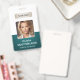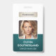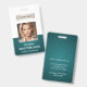Un badge d'identité d'entreprise moderne et élégant conçu dans une palette de couleurs vert profond. Facilement personnalisable avec une photo d'employé, son nom, son titre, le logo de l'entreprise et d'autres détails commerciaux. La mise en page comporte une typographie propre pour une apparence professionnelle et claire, assurant une identification facile. Ce badge d'identification est disponible avec des options pour un cordon, un clip métallique ou un support rétractable. Aucune commande minimale requise.