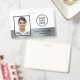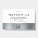 Simple et moderne badge photo ID employé avec des bandes métalliques argentées fausses. Personnalisez le devant avec votre logo, photo de l'employé, nom et titre de poste. Au verso, ajoutez le nom de votre entreprise et d'autres informations.