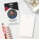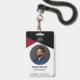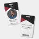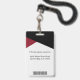 Ce badge est une façon moderne et professionnelle d'identifier les employés en milieu de travail. Il est conçu avec une palette de couleurs noir, rouge et gris et comporte à la fois un numéro d'identification unique et une photo pour faciliter l'identification.