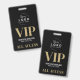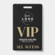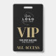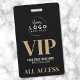 Badge élégant noir et or pour événements spéciaux VIP Votre Logo. Idéal pour les défilés de mode, les concerts, les grands événements spéciaux comme les conférences, les orateurs, et peut même fonctionner pour un anniversaire ou toute autre fête où vous souhaitez faire sentir vos invités spéciaux. Un design simple, moderne et élégant avec un espace pour ajouter votre entreprise ou même votre logo en haut. En bas, une police sérif audacieuse mélangée à une typographie simple, avec VIP, le nom de l'événement, la date et 'All Access Pass'. Vous pouvez modifier toutes les informations textuelles et les couleurs de ce badge.
