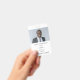 Simple employé Nom photo Logo Blanc Un badge photo entièrement personnalisable qui est facile à personnaliser avec votre photo, logo et texte. Remplacez votre photo (d'orientation paysage) par l'exemple d'image et le logo de l'entreprise, et personnalisez facilement le texte dans vos propres détails. Vous pouvez également ajouter votre adresse de retour au verso en coque votre carte se perd ou supprimer ce texte si vous le souhaitez. Les styles de police et la couleur peuvent également être modifiés via l'option Personnaliser supplémentaire, ainsi que la couleur arrière - plan.