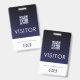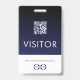 Gardez vos visiteurs et invités facilement identifiés avec ce logo personnalisé de marque de l'entreprise badge visiteur. Le design bleu marine et blanc présente un logo personnalisable et un texte qui dit "Visiteur" dans une police simple. Un code QR facilite l'accès aux informations importantes sur votre installation ou événement. Le texte en bas rappelle aux visiteurs de retourner le badge avant de partir. Ce badge est parfait pour les entreprises, les hôpitaux, les écoles, les musées, les attractions, etc.