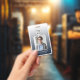 Badge Logo de photo de passeport employé | Dégradé de bl