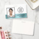 Simple, élégant et chic badge d'identification de photo d'employé avec une bande métallique fausse bleue. Personnalisez l'avant avec votre logo, le nom et le titre de l'employé sur la photo. Au verso, ajoutez le nom de votre entreprise et d'autres informations.