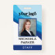 Ce badge d'identification photo employé bleu moderne avec un modèle logo est polyvalent et élégant, avec une vague bleue abstraite derrière le modèle photo. Les couleurs arrière - plans peuvent facilement être modifiées pour correspondre aux couleurs de votre entreprise en cliquant sur "Modifier à l'aide de l'outil de conception".