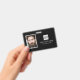 badge d'identification de l'employé de l'entreprise comportant un arrière - plan noir qui peut être changé en n'importe quelle couleur, une photo de votre employé, votre logo d'entreprise, votre prénom, votre nom de famille et votre titre professionnel.