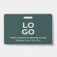 Ce badge professionnel personnalisé d'identification d'employé présente un design sophistiqué et moderne sur un arrière - plan vert foncé, couleur pin. Un exemple de logo d'entreprise ou d'entreprise est placé près du centre que vous pouvez personnaliser pour inclure votre propre logo personnalisé ou autre image. Un exemple de nom d'entreprise ou d'entreprise, suivi d'un titre d'employé, est imprimé sous le logo.