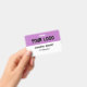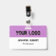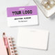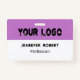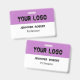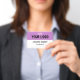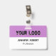 Élégant badge d'entreprise blanc et violet avec logo et texte personnalisés Le design flexible est simple à modifier et peut être customisé avec le logo de votre entreprise. Pour créer un look vraiment unique et expert pour votre propre entreprise. Il n'y a pas de quantité minimale de commande.