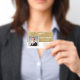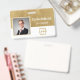 Personnalisez facilement ce nom d'employé personnalisé et badge photo avec votre propre logo d'entreprise et code qr ou code-barres. Disponible avec différentes couleurs et pièces jointes arrière - plans. Pas de quantité minimale de commande.