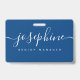 Voici notre logo simple d'entreprise Élégant Script personnalisé bleu Badge de nom! Ce badge est l'accessoire parfait pour mettre en valeur votre style chic et élégant dans un cadre professionnel. Que ce soit pour le travail, les réunions d'affaires ou les événements de réseautage, ce badge de nom vous fera ressortir avec son design unique et élégant. Le badge comporte un nom de script personnalisé, vous permettant de le personnaliser avec votre propre nom ou le nom des membres de votre personnel. L'élégante police de caractères ajoute une touche de sophistication et de professionnalisme à la conception globale. L'une des caractéristiques remarquables de ce badge est la capacité de customiser le logo. Vous pouvez facilement incorporer votre logo d'entreprise, améliorer la présence de votre marque et faire une impression durable sur les clients, les collègues et les participants à l'événement. Le design de l'insigne est volontairement gardé simple pour donner un aspect propre et moderne. Cette approche minimaliste garantit que l'accent reste mis sur votre nom et votre logo, créant ainsi une apparence élégante et professionnelle. Pour maintenir l'intégrité esthétique de la police de script, une astuce utile est de garder les longues échasses à la fin du nom en utilisant de petits carrés au début et à la fin. Cette technique préserve l'équilibre et l'élégance du design. En vous dotant, vous et vos collaborateurs, de ces badges élégants, vous améliorez non seulement votre image professionnelle, mais vous vous sentez fier et appartenance au sein de votre équipe. Chaque membre aura un badge qu'il pourra porter en toute confiance et sera fier de représenter votre marque. Étendez-vous dans le style et faites une impression durable avec notre logo simple d'entreprise Élégant badge de nom de script personnalisé. Appréciez le design chic et élégant, personnalisez-le avec votre nom et logo, et augmentez votre présence professionnelle dans n'importe quel cadre. Mots Clés : Logo Simple, Élégant Badge De Script Personnalisé, Style Chic, Professionnel, Travail, Réunions D'Affaires, Événements De Réseau, Design Unique, Design, Personnaliser, Badge De Nom, Look Moderne, Sophisticalisme, Professionnalisme, Nom De Script Personnalisé, Personnalisation, Présence De Marque, Impression Durable, Design Propre, Approche Minimaliste, Aspect Élégant, Équilibre Esthétique, , Élégance, Membres Du Personnel, Image Professionnelle, Fierté, Appartenance, Confiance, Équipe, Représenter La Marque. Conseil : pour garder les longues échasses à l'extrémité garder les petits carrés à l'extrémité et à l'avant du nom.