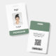 Personnalisez facilement ce badge personnalisé de nom d'employé avec photo, code de barre d'analyse et logo d'entreprise. Un design d'entreprise simple en vert et blanc cool bio et respectueux de l'environnement entièrement personnalisable en tailles avant et arrière, sans-serif polices de base et moderne et un look professionnel et clair. Parfait pour les petites entreprises, les cliniques, les hôpitaux ou comme Infirmière BSN Badge. Disponible avec cordon, clip métallique ou avec rétractable. Pas de commande minimum. Balise d'identification d'employé personnalisée, Logo d'entreprise, Photo, Badge de code Qr de barre