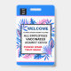 Logo d'entreprise Vacciné par les employés Carte d'identité personnalisée informe tout le monde que vos employés de votre entreprise sont vaccinés et que vos clients doivent porter leur masque. Excellente information pour quand tout le monde marche à travers la porte. Personnalisez-le avec vos informations.
