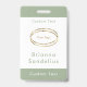 Personnalisez ce script moderne vert sauge pour le badge parfait. Ajoutez votre texte personnalisé en haut, au milieu et en bas de ce badge d'identification. Ajoutez le logo ou l'image de votre entreprise pour une plaque d'identification professionnelle. Toute la typographie minimaliste moderne est modifiable. Les lignes claires et nettes créent un look professionnel élégant. Ce badge d'identification employé vert sauge ou badge d'identification est simple et moderne.