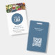 Ce design comprend un badge de votre logo ici, une entreprise, un code à barres photo QR code, employé du personnel d'affaires, nom et titre, marque, un minimaliste simple, professionnel moderne, avec des fournitures de bureau standard, un style bleu simple minimal.