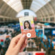Carte d'identité photo et logo de l'employé rose et orange élégant
