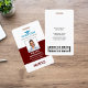 Ajoutez les détails de vos employés sur ces badges du personnel médical avec leur photo et leur nom. Vous pouvez également saisir des champs pour entrer le nom de votre hôpital ou centre de soins de santé, son titre et son abréviation, son numéro d'identification d'employé. Ajoutez votre logo et le titre ou le rôle de l'employé en caractères gras pour faciliter l'identification. Customisez avec un code à barres au verso si nécessaire, ainsi que les informations sur l'adresse de retour, y compris le numéro de téléphone de votre établissement
