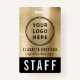 Le personnel professionnel moderne, l'insigne d'identification de l'employé ou de l'équipage pour votre entreprise, événement, conférence ou congrès portant le logo de votre entreprise ou de votre organisation contre un faux arrière - plan métallique en or (vous pouvez remplacer cet arrière - plan par votre propre image si vous le souhaitez). Ajoutez un nom et un titre de travail ou l'événement et la date.