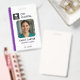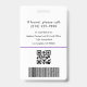 Un modèle professionnel d'insigne d'infirmier en pédiatrie avec espace pour votre photo, nom, titre d'emploi, numéro d'identification et logo personnalisé. Conçu avec une couleur violette propre, ce badge est idéal pour les infirmières pédiatriques, les pédiatres, les spécialistes de la vie infantile et le personnel médical travaillant dans les hôpitaux ou les cliniques pour enfants. L'arrière comprend des espaces réservés pour un code à barres, un code QR, et des coordonnées perdues et trouvées pour une sécurité supplémentaire. Parfait pour les hôpitaux, les pratiques pédiatriques et les organismes de santé qui ont besoin d'une identification personnalisée du personnel.