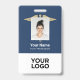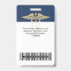 Personnalisez facilement ce badge personnalisé de médecin, d'infirmière ou d'employé avec photo, code-barres et logo d'entreprise. Un design simple pour les entreprises de santé dans les couleurs bleu marine, or et blanc avec le symbole médical caducée, entièrement personnalisable, tailles avant et arrière, polices basiques et modernes sans serif et un aspect professionnel et clair. Le symbole médical caducée peut être personnalisé dans n'importe quelle couleur. Les badges d'identification sont disponibles avec un cordon, un clip métallique ou rétractable. Aucune commande minimum.
