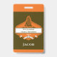 Badges personnalisés avec le nom et le prénom du logo de l'arbre généalogique de la réunion de famille. Cadeau souvenir de votre incroyable réunion de famille. Design moderne de style logo en orange, marron et blanc. Parfait pour les événements en plein air et sur le thème de la nature.