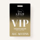 Evénement Votre Logo Black Gold All Access VIP Badge. Idéal pour les défilés de mode, les concerts, les grands événements spéciaux comme les conférences, les conférenciers, et peut même travailler pour une fête d'anniversaire ou toute autre fête où vous voulez que vos invités se sentent spéciaux. Un simple, moderne, mais élégant, regarder avec un endroit pour ajouter votre entreprise ou même logo haut (ou remplacer par une icône amusante si faire pour un type d'anniversaire). En bas se trouve une police serif audacieuse mélangée à de la typographie simple, avec VIP, le nom de l'événement, la date et 'All Access Pass'. Vous pouvez modifier toutes les informations textuelles et les couleurs de ce badge (sauf le dégradé noir supérieur).