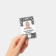 Ce badge présente un arrière - plan empreinte de léopard moderne en argent et en faux papier noir et moderne divisé par un bloc de couleur blanche. Customisez-le avec votre photo carré, nom, titre de travail, logo, nom de l'entreprise, adresse ou autres informations, et code à barres en option.