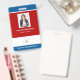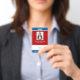 badge de nom de l'employé de l'immobilier moderne avec photo et logo. Conçu avec des couleurs rouges, blanches et bleues avec un endroit pour votre photo, logo, nom, titre et nom de l'entreprise. Parfait pour un Realtor, un Agent, un Broker ou tout professionnel dans le marché de l'immobilier. Utilisation pendant les journées portes ouvertes, les événements d'appréciation des clients et les visites à domicile.