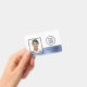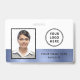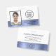 badge simple, élégant et chic d'identification photo employé avec un faux ruban bleu métallique. Customisez l'avant avec votre logo, le nom de la photo de l'employé et le titre du poste. Au verso, ajoutez le nom de votre société et d'autres informations.