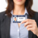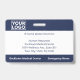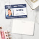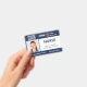 Gardez votre hôpital ou votre cabinet médical en sécurité avec des badges photo personnalisés horizontaux qui indiquent la photo, le nom, le titre de l'emploi et le numéro d'identification de votre employé, ainsi que le logo et le nom de l'entreprise. Vous pouvez également inclure un département si vous le souhaitez. Parfait pour une infirmière ou un autre personnel. Au verso, vous pouvez ajouter plus d'informations, par exemple où retourner le badge s'il se perd. Customisez-le avec une photo, n'importe quel logo de forme et du texte personnalisé dans la barre latérale. La photo carré à gauche a une mince bordure blanche entourée de bandes bleu marine sur le dessus et le bas et de fines lignes navales sur les côtés. Un bloc blanc situé sur le côté central droit met en surbrillance le titre du travail, le numéro d'identification et la date d'expiration en bleu foncé. Le nom du personnel et le texte de l'hôpital ou de l'entreprise sont blancs sur bleu foncé. Votre logo est en haut à gauche sur la marine afin que les logos blancs ou de couleur claire fonctionnent mieux. Vous pouvez modifier les couleurs de l'arrière - plan et du texte pour qu'elles correspondent à votre marque en appuyant sur "cliquer pour customiser plus loin". Vous pouvez également ajouter un clip métallique, une longe ou une pièce jointe rétractable dans la barre latérale. Voir d'autres badges d'identité dans la collection Rocklawn Arts. Copyright ©Claire E. Skinner. Tous droits réservés.