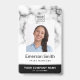 badge personnalisable avec arrière - plan en marbre blanc et bordure noire au fond. Téléchargez votre propre logo, votre photo et votre code à barres et fabriquez des étiquettes de nom et des badges d'identification d'employé personnalisés pour votre entreprise. Facile à utiliser modèle. Vous pouvez redimensionner la photo, le logo et le code à barres avec l'outil de conception. Pour redimensionner la photo, vous devez d'abord la démasquer. Les polices et les couleurs sauf la partie blanche du dégradé sont entièrement personnalisables.