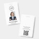 Créez une première impression professionnelle et soignée avec ce logo moderne et ce badge d'identification photo, conçu pour les entreprises, les bureaux, les conférences et les événements d'entreprise. Cette étiquette nominative d'employé personnalisable présente une mise en page épurée avec le logo de l'entreprise, la photo de l'employé, le nom, le titre de poste et un verso fonctionnel avec QR code et coordonnées de l'entreprise.