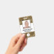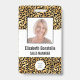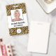 Ce badge est doté d'un arrière - plan empreinte de léopard moderne tendance doré et faux feuille noir. Customisez-le avec votre photo carré, nom, titre de travail, logo, nom de l'entreprise, adresse ou autres informations, et code à barres en option.