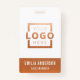 Personnalisez facilement ce badge personnalisé de nom d'employé avec votre propre logo d'entreprise et code qr ou code-barres. Disponible avec différentes couleurs et pièces jointes arrière - plans. Pas de quantité minimale de commande.