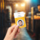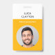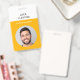 Badge photo moderne et professionnel comportant votre photo dans un cadre circulaire avec une typographie minimaliste tendance. Au dos, il y a un espace pour les informations de contact, le site web ou les médias sociaux ainsi que votre logo personnalisé ou code QR. C'est la version jaune orange audacieuse.