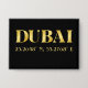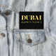 Collectible pinback button features Dubai, UAE latitude and longitude map coordinates in gold fonts on black background.