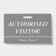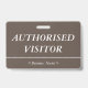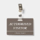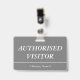 Cette conception de badge respectable comporte le message "AUTHORIZED VISITOR", ainsi qu'un nom d'entreprise personnalisable ou un autre message personnalisé. Un badge comme celui-ci pourrait être utilisé pour indiquer qu'un visiteur ou un invité dans un lieu de travail est autorisé à y être. [~Z0000307]