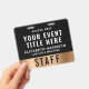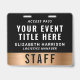 Create a polished, professional presentation with this luxury event access pass badge, designed to combine clear identification, branding, and modern QR functionality. Featuring a sleek matte black background paired with a metallic gold accent band, and a bold, easy-to-read layout, this badge highlights your event title and staff or VIP name and their details for instant recognition. The back includes a large scannable QR code, making it ideal for check-ins, schedules, digital tickets, credentials, or secure access control. Perfect for conferences, corporate events, festivals, and productions.