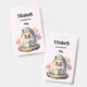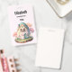 Étiquette nominative personnalisée avec une image adorable représentant un lapin rond debout devant sa maison en forme d'oeuf. Les couleurs pastel et les cerisiers ajoutent à l'ambiance kawaii japonaise.