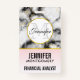 Insigne de nom avec un motif marbré moderne et élégant. Marbre blanc, noir et gris fumé avec de minces rubans de tourbillons en faux or dans tout le motif. Un cercle blanc avec un cadre en faux or superposé avec votre initiale monogramme et votre nom à l'intérieur.