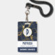 badge de nom personnalisé avec un arrière - plan élégant et élégant de marbre bleu marine et or. Couché sur le dessus est un cercle avec une fausse bordure en feuille d'or avec votre premier intérieur.