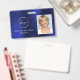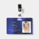 Ajoutez votre propre logo Professionnel Entreprise Nom de travail, Photo et Titre du travail Carte d'identité bleue et blanche Photo Insigne commercial vertical. Cette conception est simple et facile à utiliser en changeant votre prénom et votre nom ainsi que votre titre de travail et votre plan de tête d'entreprise.