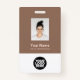 Brun rose tendance nom féminin mignon marque BadgePersonnalisez facilement ce badge personnalisé de nom d'employé avec photo, code de la barre de numérisation et logo d'entreprise. Un design d'entreprise simple en bleu marine et blanc entièrement personnalisable en tailles avant et arrière, sans-serif polices de base et moderne et un look professionnel et clair. Disponible avec cordon, clip métallique ou avec rétractable. Pas de commande minimum.