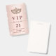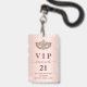 Un badge moderne, élégant et glamour pour une fête mascarade du 21ème (ou tout âge). Un arrière - plan rose à dégradé d'or avec des éclats d'argent faux et un masque masqué. Avec le texte : VIP. Personnalisez et ajoutez le nom, l'âge, l'adresse/la date. Le nom est écrit avec un rose moderne couleur or foncé écriture de style manuscrit avec des swashes. Pour que les swashes ne suppriment que le nom de l'échantillon, laissez les espaces ou émoticônes devant et après le nom. Dos : pas de design ni de couleur (moins cher)