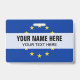 badge métallique personnalisé avec drapeau de l'Union européenne. Étiquettes en plastique avec clip en métal et option cordon de lanière. Texte personnalisable Ajoutez une photo sur le dos en option. Cartes d'identité utiles pour bureau, travail bénévole, événements, réunion, réunion, fête, festival, équipes sportives, clubs, délégation politique et plus encore. Drapeau UE aux étoiles jaunes. Superposition transparente.