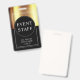 Modèle de badge d'événement métallisé or et noir. Remplacez par le nom et la date de votre événement. Style élégant et luxueux. Cette version est livrée avec un cordon, mais vous pouvez choisir votre style de fixation qui comprend, cordon, clip métallique ou rétractable.