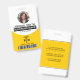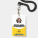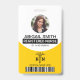 Badge de modèle de photo de caducée d'infirmière diplômée jaune du personnel médical avec code-barres. Il comporte votre nom, titre et photo sur fond blanc tandis que le symbole du caducée et le code-barres sont en jaune.