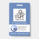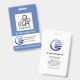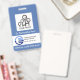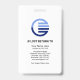 Un design de boîte à colonnes simple bleu et blanc. La couche bleue ci-dessus héberge une option de modèle de photo avec une taille de photo de 1 000 x 1 000 pixels. Votre nom prestigieux est juste en dessous du logo. Dans la couche blanche se trouve un logo global bleu facultatif que vous pouvez utiliser. À côté se trouvent le nom de l'organisation et du département ainsi que le numéro d'employé. Le titre de poste est à la base de la carte.