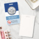 Une conception de colonne de boîte avec des nuances bleues. Dans la partie supérieure se trouve un cadre en demi-cercle bleu foncé qui encapsule une option de placard photo ; cela aidera les photos qui ont un fond blanc. La taille de la photo est de 1 000 pix x 1 000 pix. Sous la photo, dans une bande de colonne bleue, se trouvent votre nom prestigieux et votre titre professionnel. À la base du badge, se trouve le logo facultatif des soins de santé que vous pouvez utiliser avec le nom de son organisation et ses coordonnées.