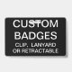 La coutume a imprimé a personnalisé 3,38" x 2,13" modèle vide d'INSIGNE (avec l'arrière - plan NOIR - changez en n'importe quelle couleur). La conception, créent, font vos propres. Votre photo, image, texte, le logo, graphiques en bord-à-bord polychrome impriment sur l'avant et le dos - horizontaux ou des conceptions de verticale. Fait du plastique de PVC, les biens, ne se faneront pas ou ne déchireront pas. Disponible avec la lanière, l'agrafe en métal, l'agrafe escamotable, ou l'insigne seulement.