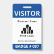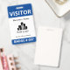 badge de visiteur vertical recto verso avec un design simple en bleu et blanc. VISITOR est écrit en caractères blancs gras contre un arrière - plan bleu pour être facilement visible. Ajoutez votre nom commercial, votre logo et votre succursale. En bas, le numéro de badge.